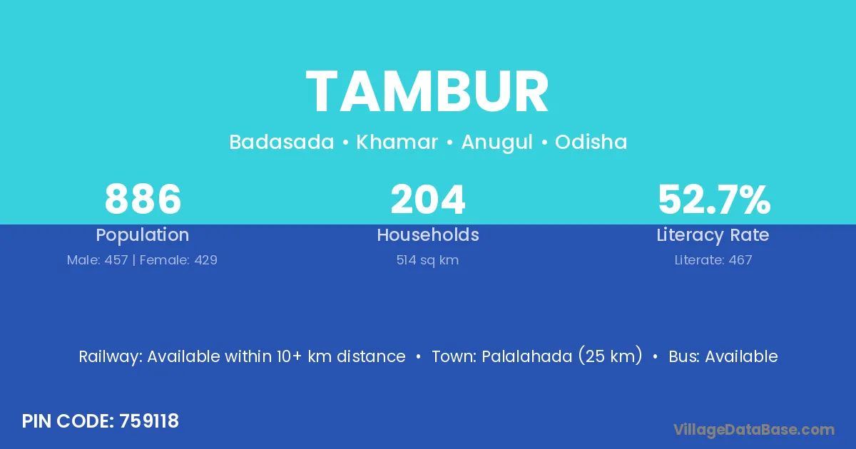 Palalahada (25 km) is the nearest town to Tambur village for major economic activities and is located approximately 25 km away.