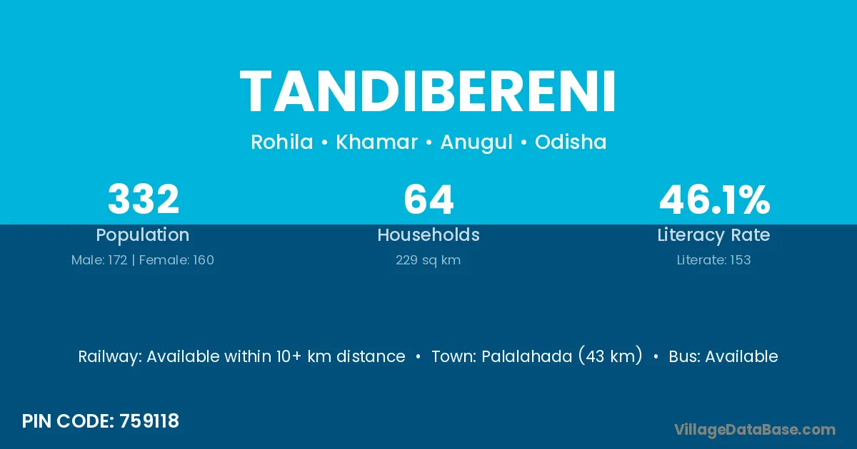 Tandibereni village is located in the Khamar Tehsil of the Anugul district in Odisha .
