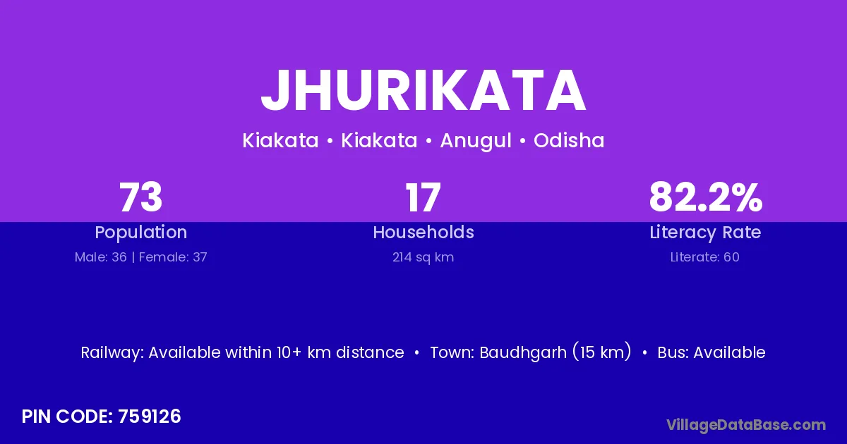 Jhurikata village has a total population of 73 people, of which 36 are males and 37 are females.
