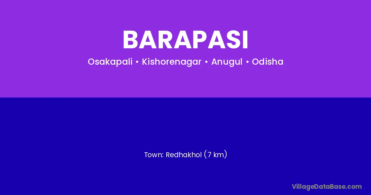 Redhakhol (7 km) is the nearest town to Barapasi village for major economic activities and is located approximately 7 km away.