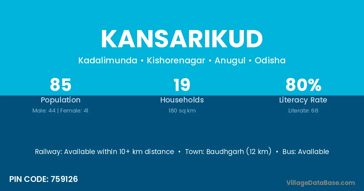 Baudhgarh (12 km) is the nearest town to Kansarikud village for major economic activities and is located approximately 12 km away.