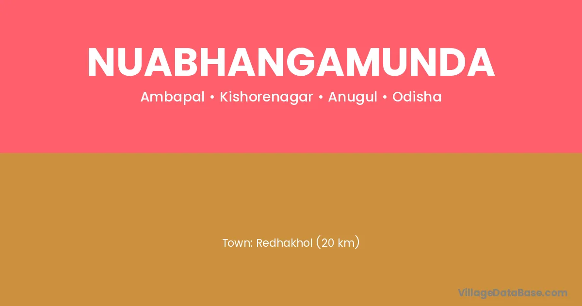 Redhakhol (20 km) is the nearest town to Nuabhangamunda village for major economic activities and is located approximately 20 km away.