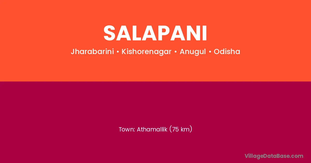 Athamallik (75 km) is the nearest town to Salapani village for major economic activities and is located approximately 75 km away.