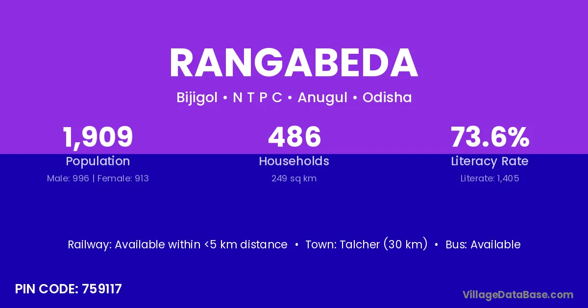 Talcher (30 km) is the nearest town to Rangabeda village for major economic activities and is located approximately 30 km away.