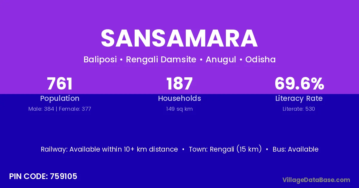 Sansamara village has a total population of 761 people, of which 384 are males and 377 are females.