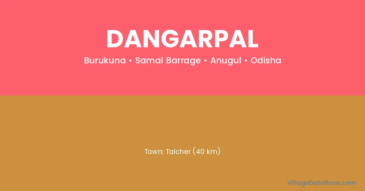 Talcher (40 km) is the nearest town to Dangarpal village for major economic activities and is located approximately 40 km away.