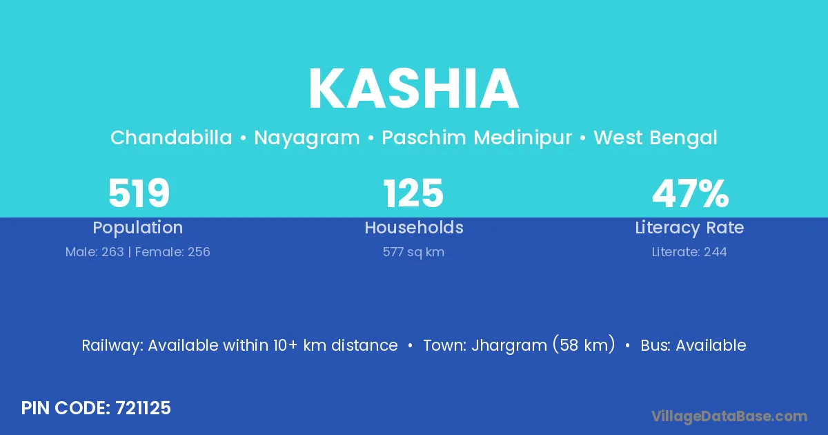 According to Census 2011 information, the village code of Kashia village is 759100.