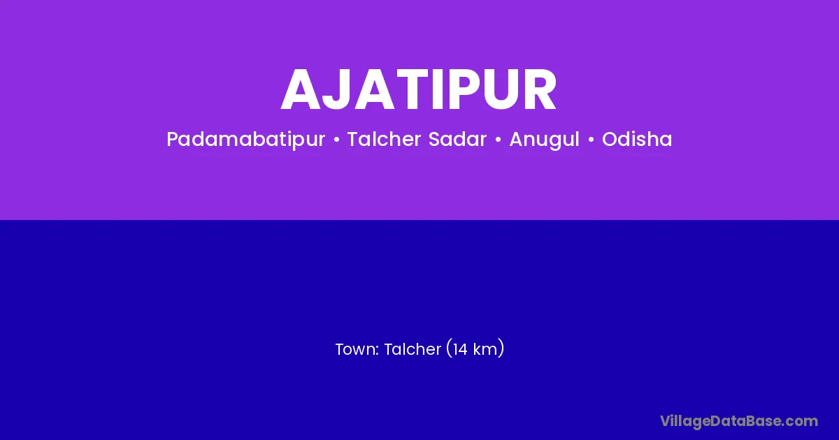 Talcher (14 km) is the nearest town to Ajatipur village for major economic activities and is located approximately 14 km away.