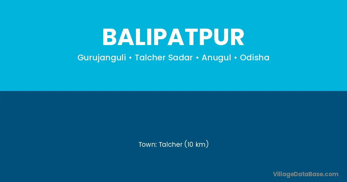 Talcher (10 km) is the nearest town to Balipatpur village for major economic activities and is located approximately 10 km away.