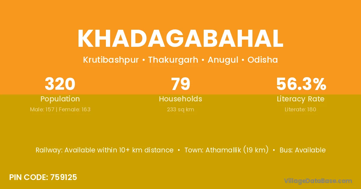 Athamallik (19 km) is the nearest town to Khadagabahal village for major economic activities and is located approximately 19 km away.