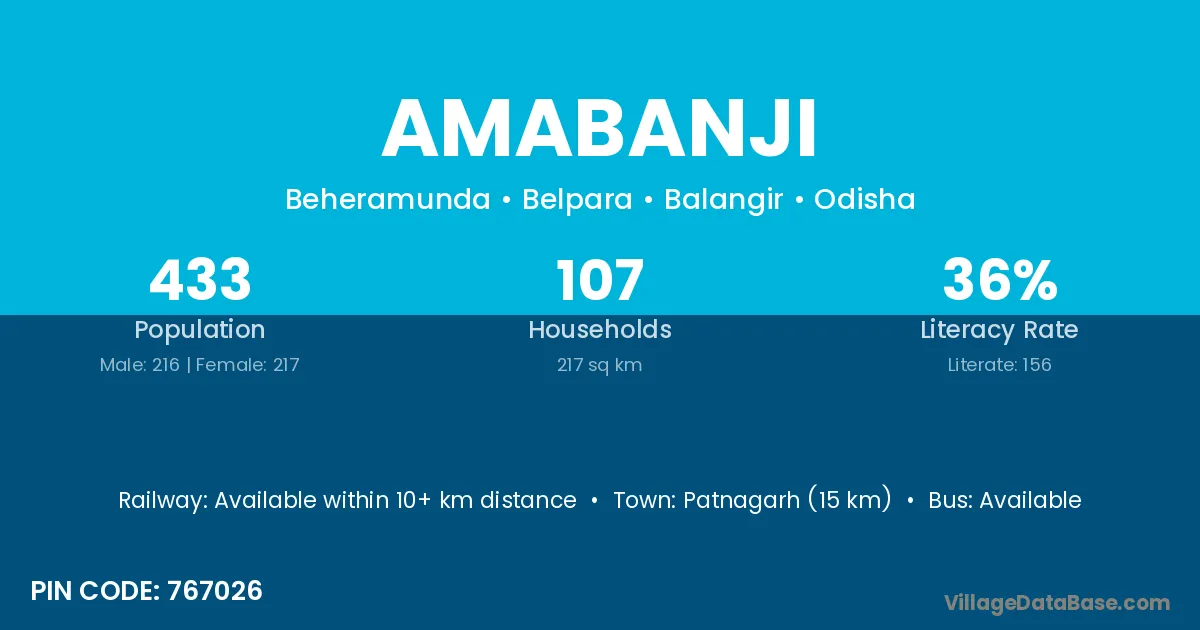 Patnagarh (15 km) is the nearest town to Amabanji village for major economic activities and is located approximately 15 km away.