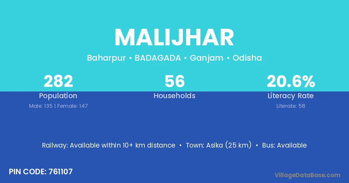 Patnagarh (16 km) is the nearest town to Malijhar village for major economic activities and is located approximately 16 km away.