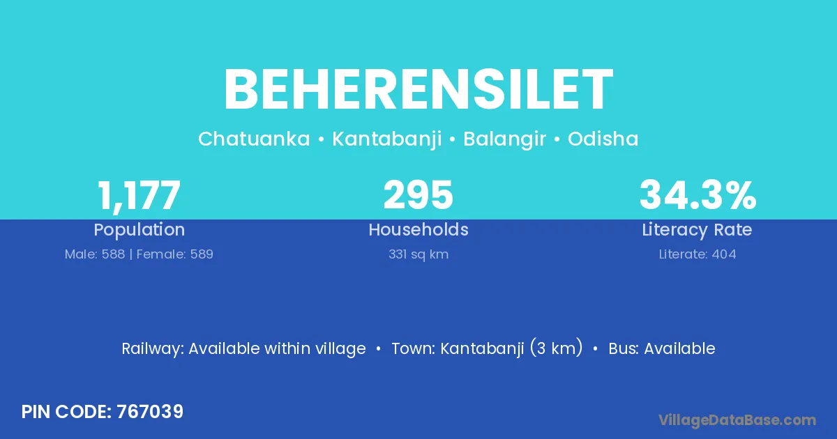Kantabanji (3 km) is the nearest town to Beherensilet village for major economic activities and is located approximately 3 km away.