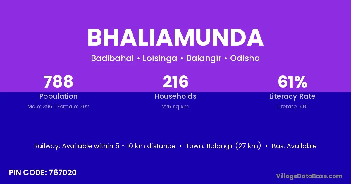 Balangir (27 km) is the nearest town to Bhaliamunda village for major economic activities and is located approximately 27 km away.