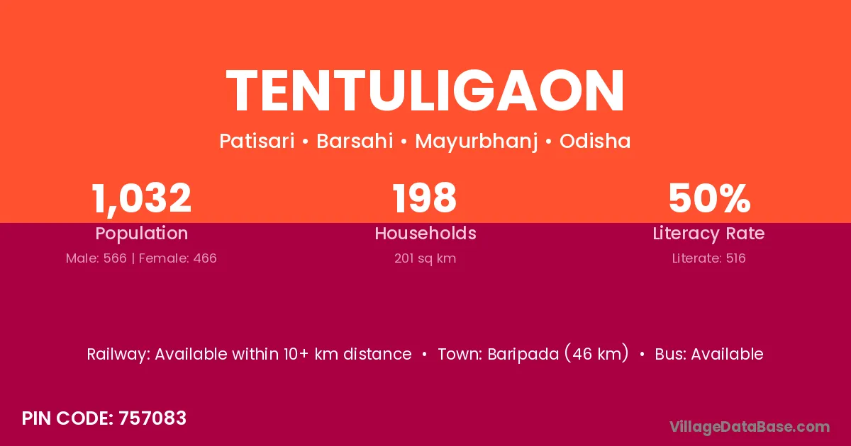 Balangir (40 km) is the nearest town to Tentuligaon village for major economic activities and is located approximately 40 km away.