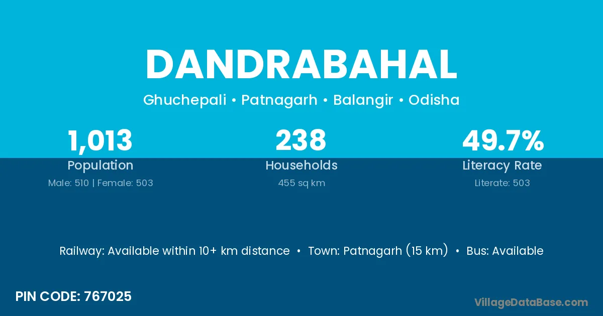 Dandrabahal village has a total population of 1,013 people, of which 510 are males and 503 are females.
