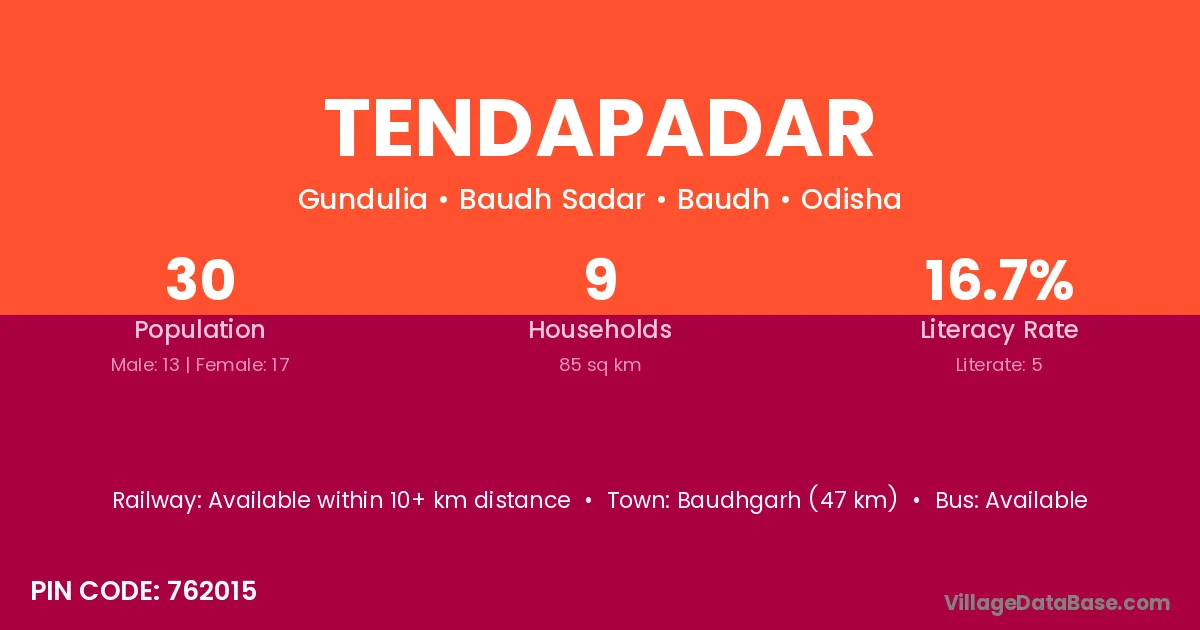 Patnagarh (4 km) is the nearest town to Tendapadar village for major economic activities and is located approximately 4 km away.