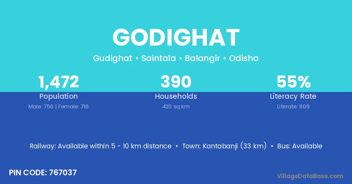 Kantabanji (33 km) is the nearest town to Godighat village for major economic activities and is located approximately 33 km away.