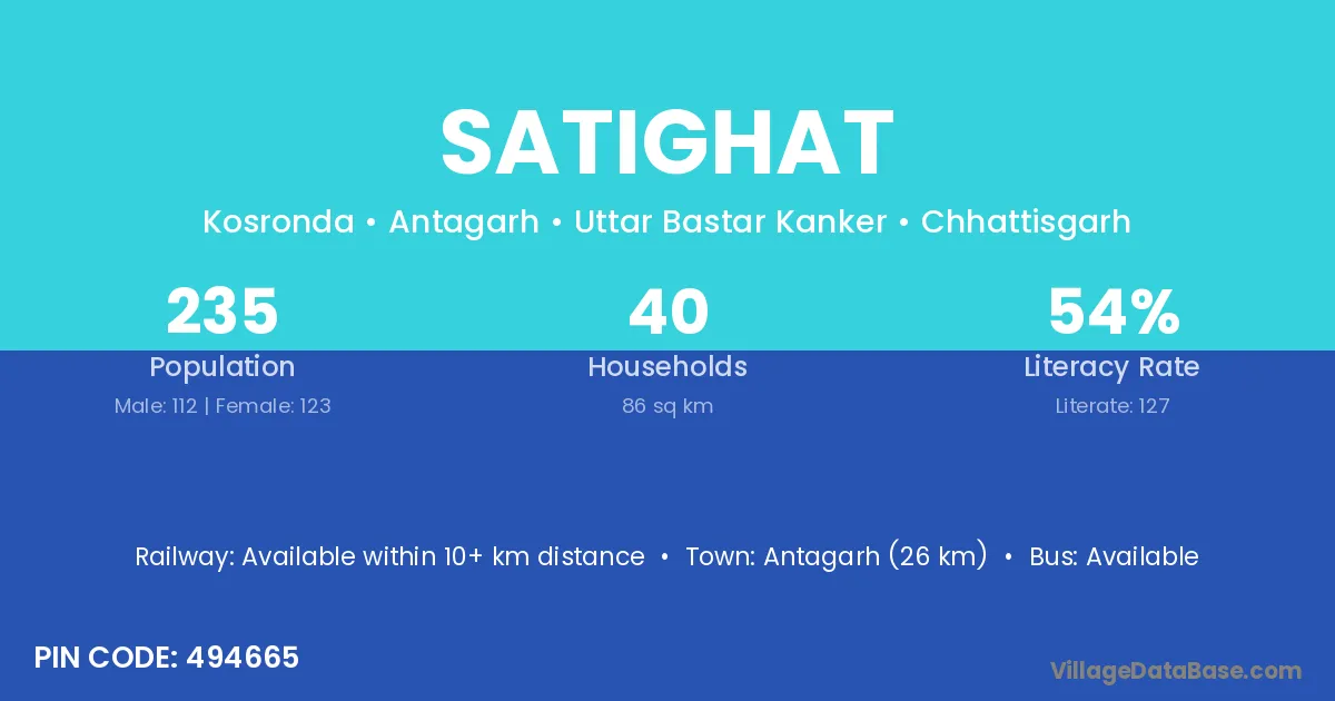 Satighat village has a total population of 413 people, of which 218 are males and 195 are females.