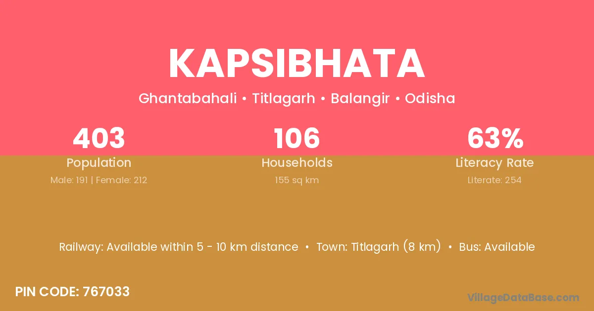 Titlagarh (8 km) is the nearest town to Kapsibhata village for major economic activities and is located approximately 8 km away.
