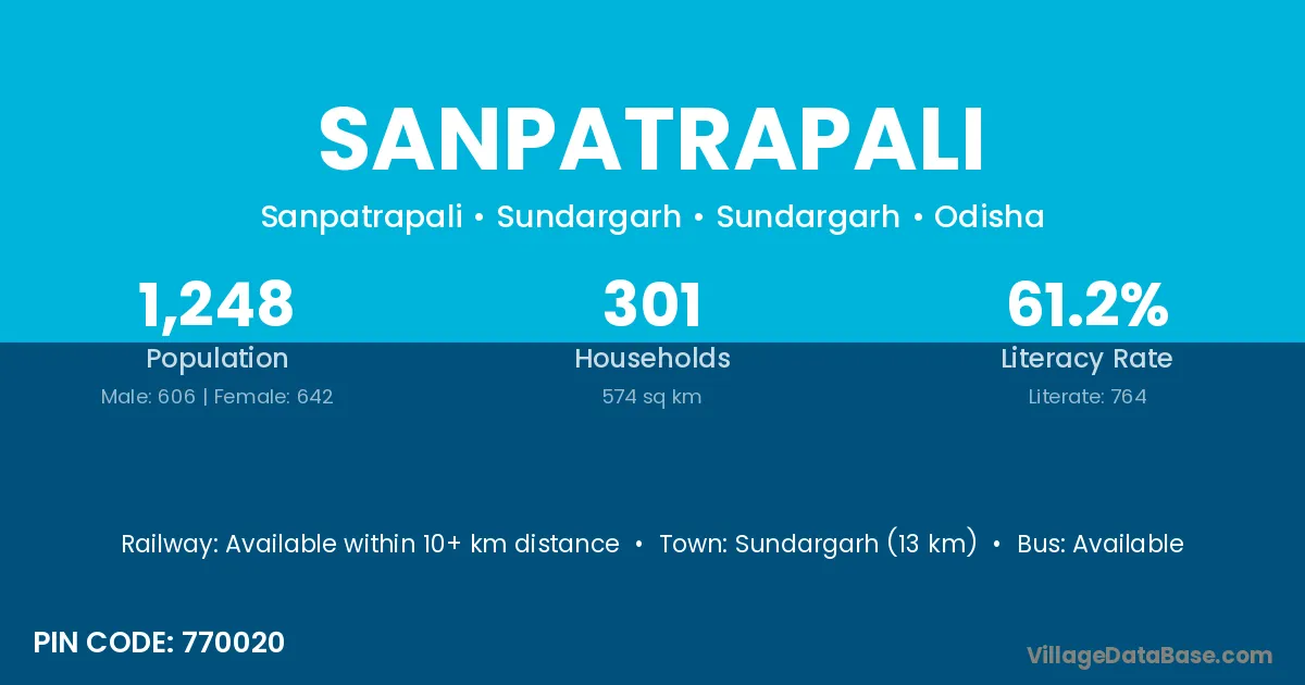Sanpatrapali village has a total population of 1,534 people, of which 736 are males and 798 are females.