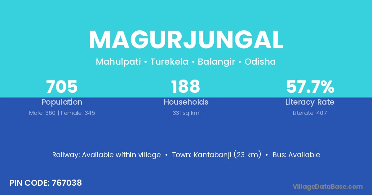 Magurjungal village has a total population of 705 people, of which 360 are males and 345 are females.