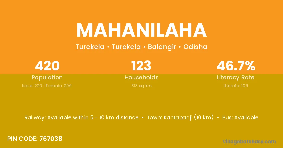 Kantabanji (10 km) is the nearest town to Mahanilaha village for major economic activities and is located approximately 10 km away.