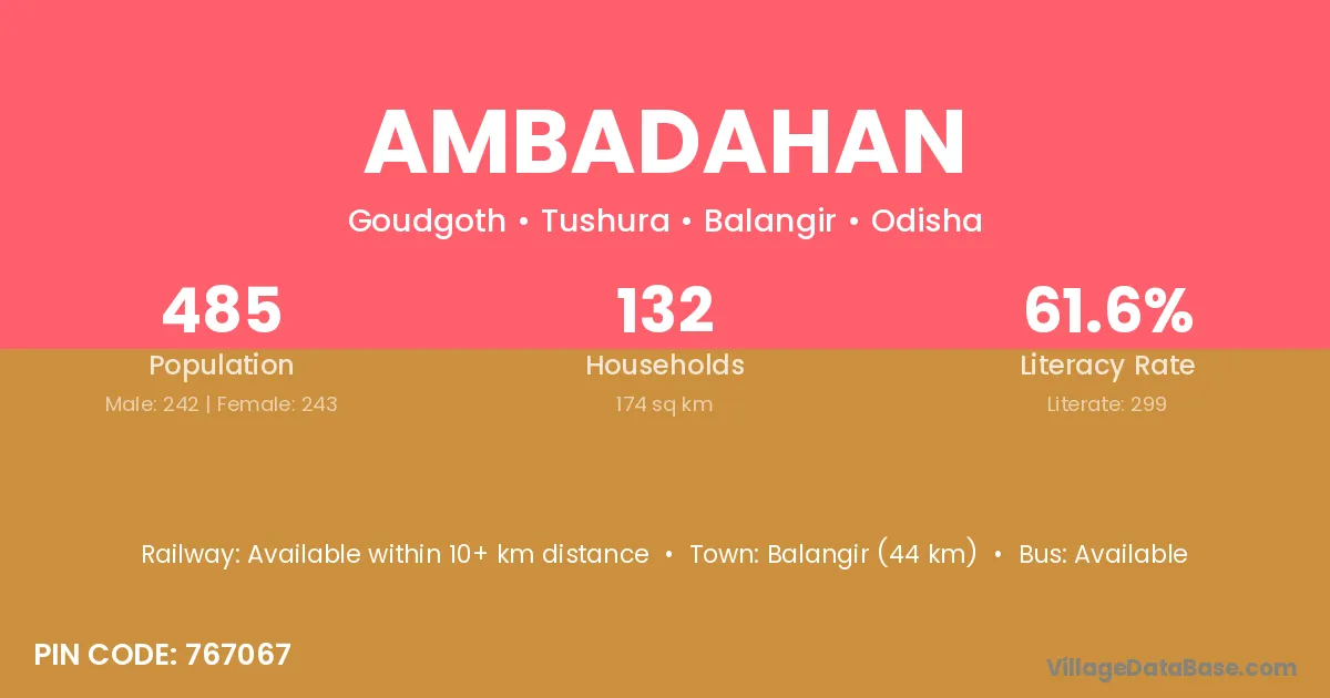 Ambadahan village has a total population of 485 people, of which 242 are males and 243 are females.
