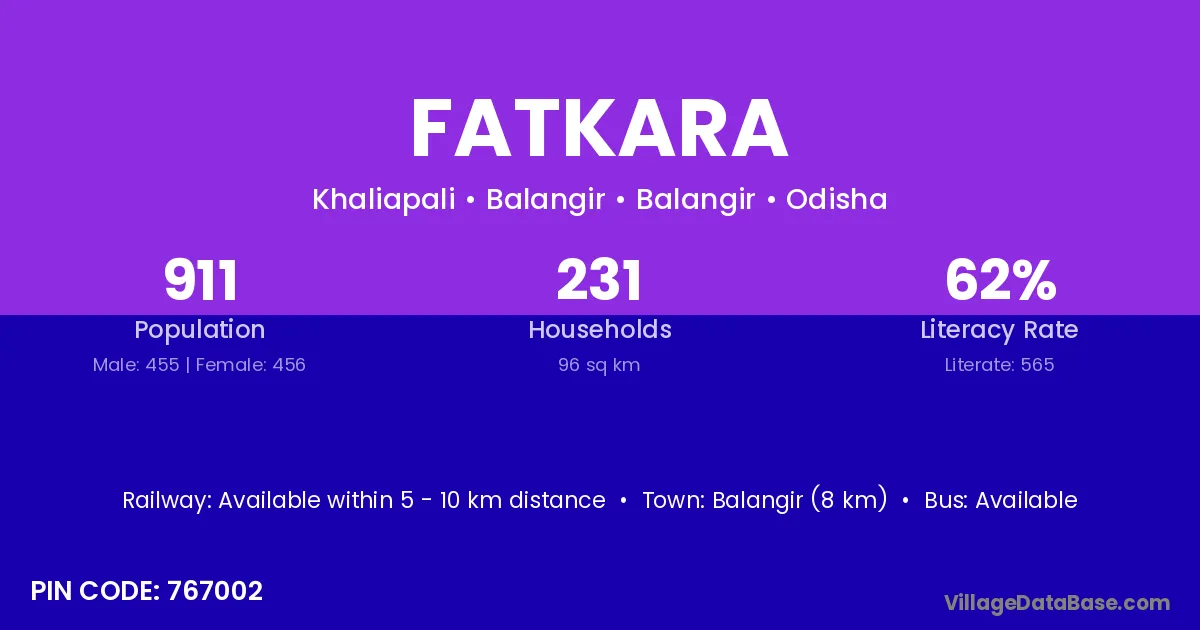 Balangir (22 km) is the nearest town to Fatkara village for major economic activities and is located approximately 22 km away.