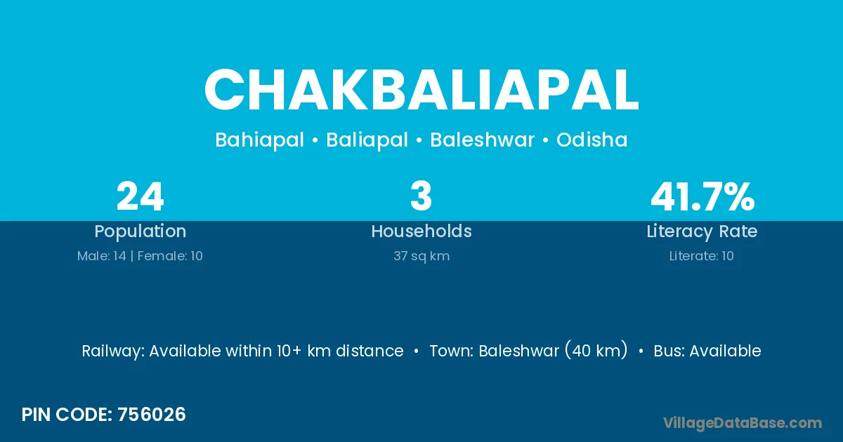 Baleshwar (40 km) is the nearest town to Chakbaliapal village for major economic activities and is located approximately 40 km away.