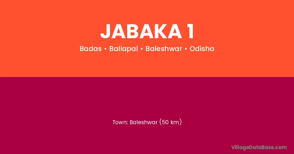 Jabaka 1 village is located in the Baliapal Tehsil of the Baleshwar district in Odisha .