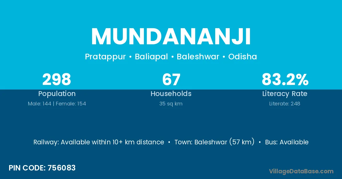 Baleshwar (57 km) is the nearest town to Mundananji village for major economic activities and is located approximately 57 km away.