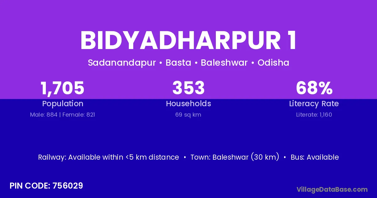 Baleshwar (30 km) is the nearest town to Bidyadharpur 1 village for major economic activities and is located approximately 30 km away.