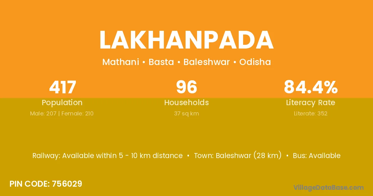 Baleshwar (28 km) is the nearest town to Lakhanpada village for major economic activities and is located approximately 28 km away.