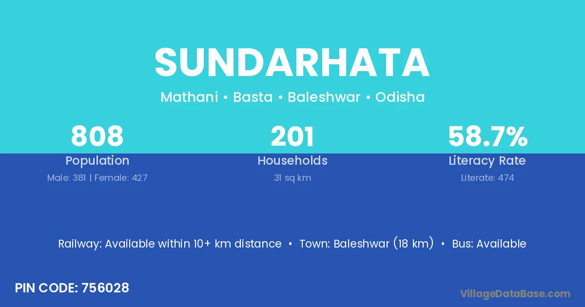 Baleshwar (18 km) is the nearest town to Sundarhata village for major economic activities and is located approximately 18 km away.