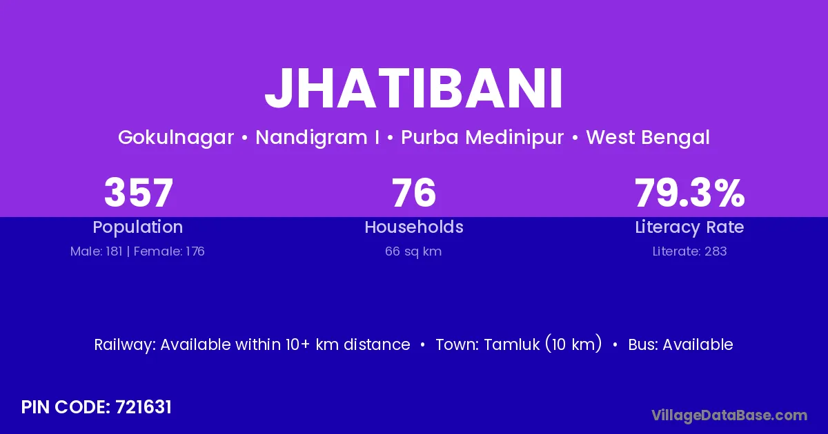 Jaleswar (42 km) is the nearest town to Jhatibani village for major economic activities and is located approximately 42 km away.