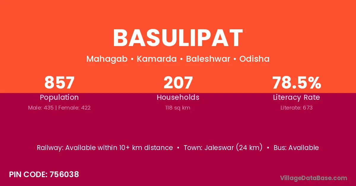 Jaleswar (24 km) is the nearest town to Basulipat village for major economic activities and is located approximately 24 km away.