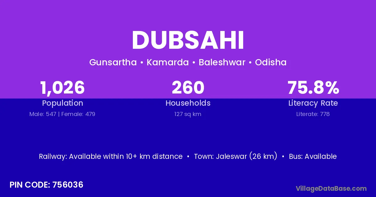 Jaleswar (26 km) is the nearest town to Dubsahi village for major economic activities and is located approximately 26 km away.