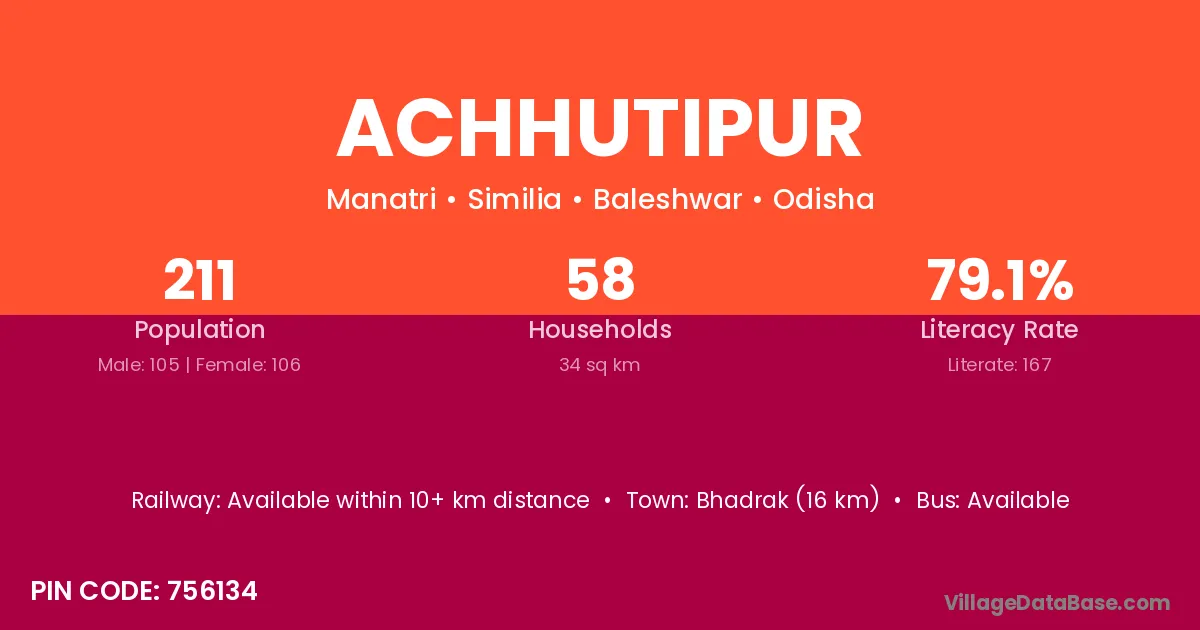 Soro (18 km) is the nearest town to Achhutipur village for major economic activities and is located approximately 18 km away.