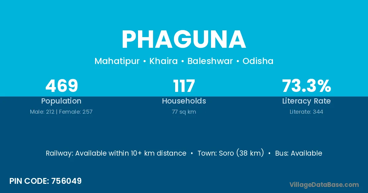 Soro (38 km) is the nearest town to Phaguna village for major economic activities and is located approximately 38 km away.