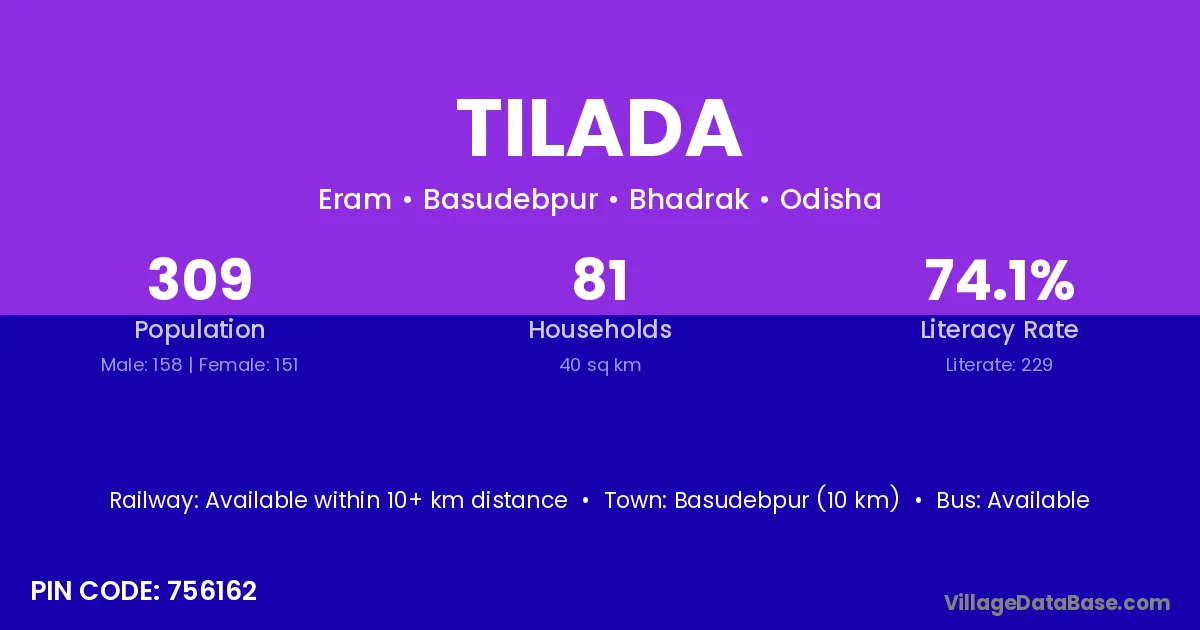 According to Census 2011 information, the village code of Tilada village is 756049.