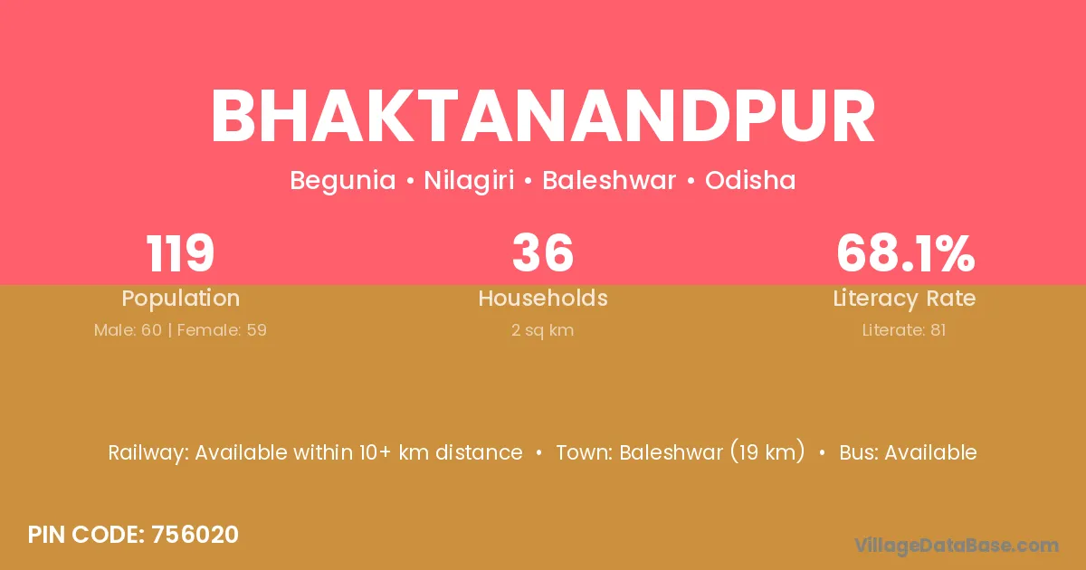 Baleshwar (19 km) is the nearest town to Bhaktanandpur village for major economic activities and is located approximately 19 km away.