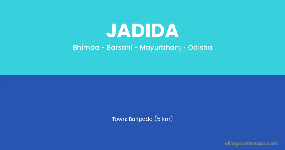 Nilagiri (5 km) is the nearest town to Jadida village for major economic activities and is located approximately 5 km away.