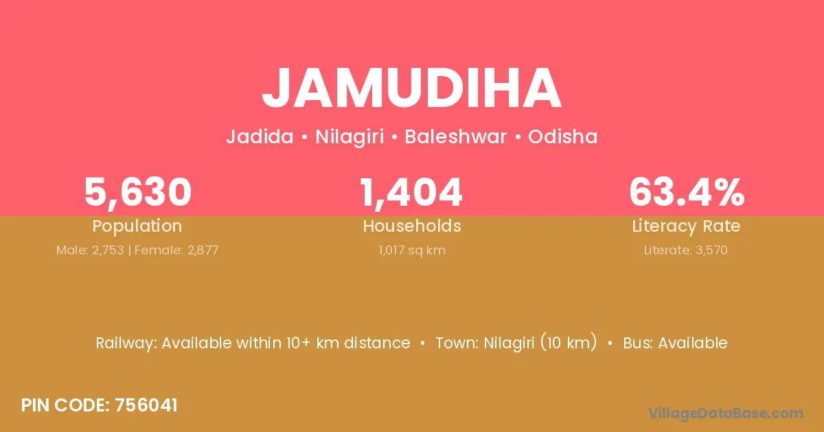 Nilagiri (10 km) is the nearest town to Jamudiha village for major economic activities and is located approximately 10 km away.