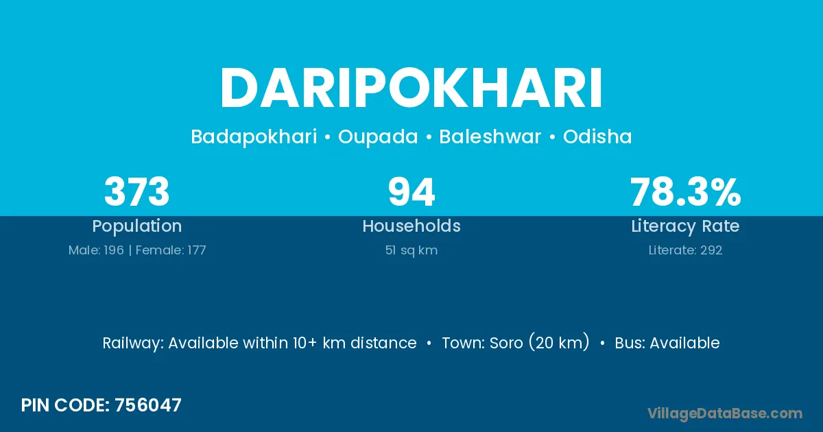 Soro (20 km) is the nearest town to Daripokhari village for major economic activities and is located approximately 20 km away.