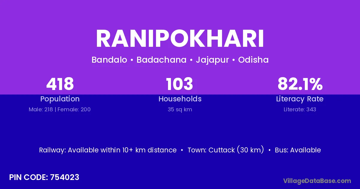 According to Census 2011 information, the village code of Ranipokhari village is 756049.