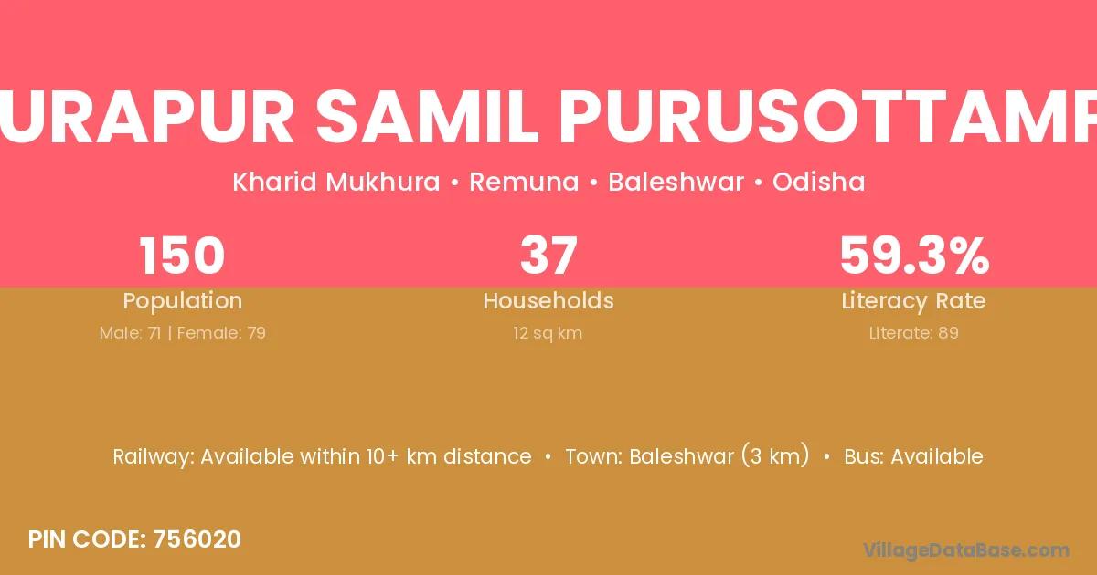 Baleshwar (3 km) is the nearest town to Gourapur Samil Purusottampur village for major economic activities and is located approximately 3 km away.