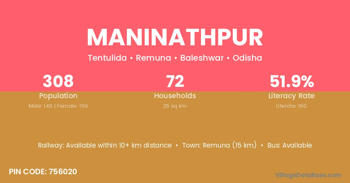 Remuna (15 km) is the nearest town to Maninathpur village for major economic activities and is located approximately 15 km away.