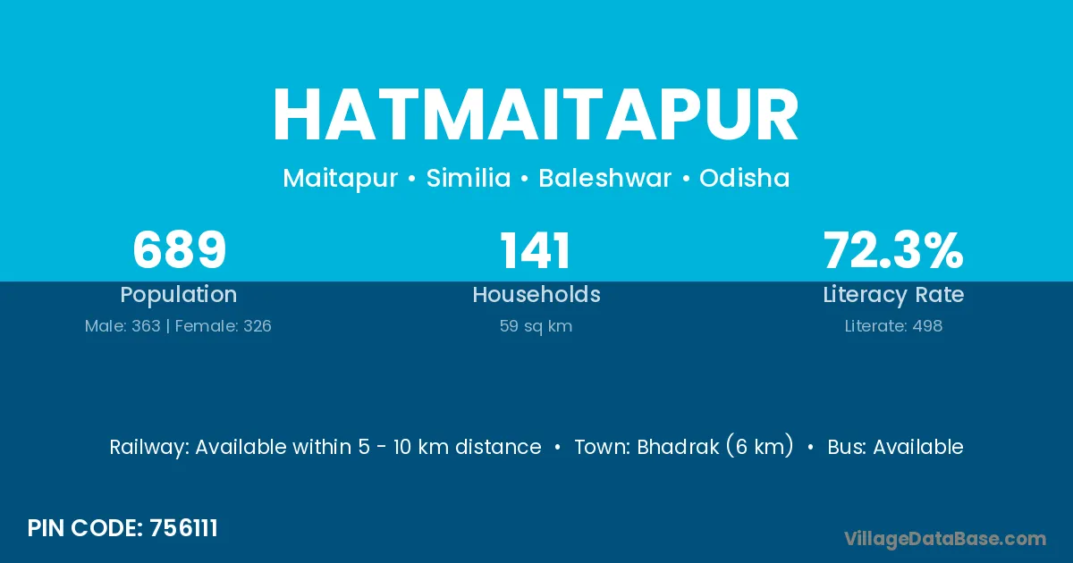 Bhadrak (6 km) is the nearest town to Hatmaitapur village for major economic activities and is located approximately 6 km away.
