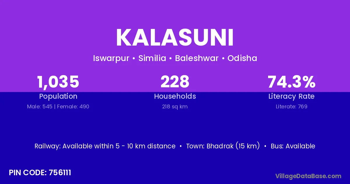 Kalasuni village has a total population of 1,035 people, of which 545 are males and 490 are females.